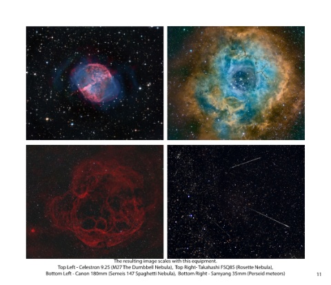 Top Left - Celestron 9.25 (M27 The Dumbbell Nebula), Top Right- Takahashi FSQ85 (Rosette Nebula),