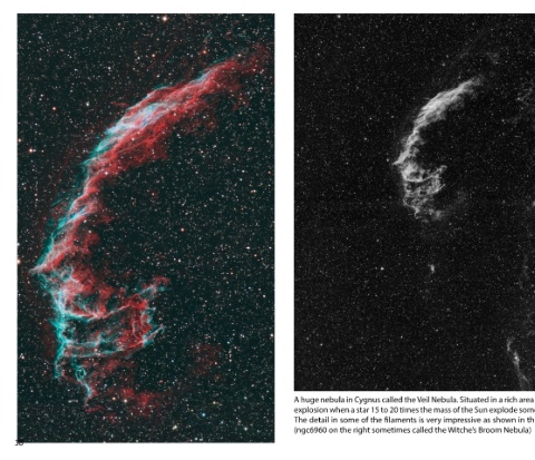 The detail in some of the filaments is very impressive as shown in the colour close ups the eastern veil (ngc6992 on the left) and the western veil