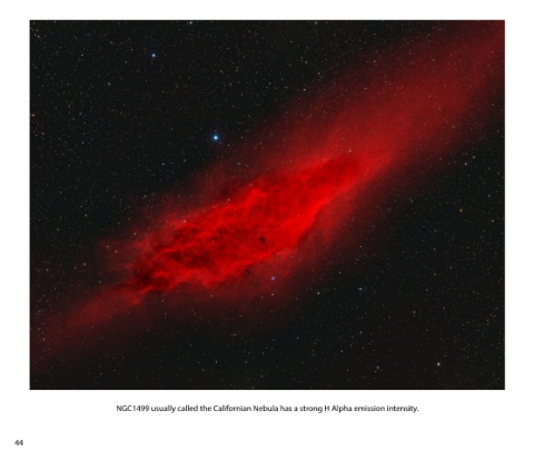 NGC1499 usually called the Californian Nebula has a strong H Alpha emission intensity. 44