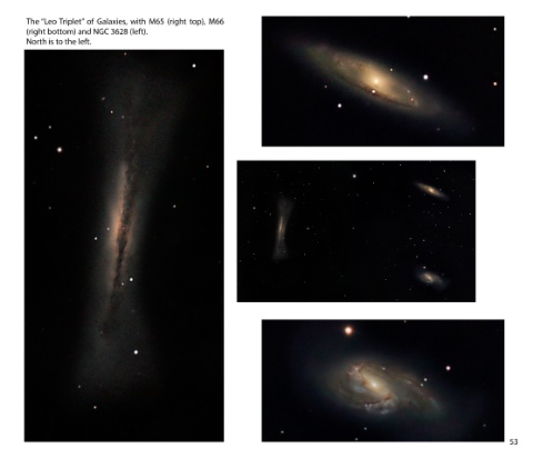 The “Leo Triplet” of Galaxies, with M65 (right top), M66 (right bottom) and NGC 3628 (left). North is to the left. 53