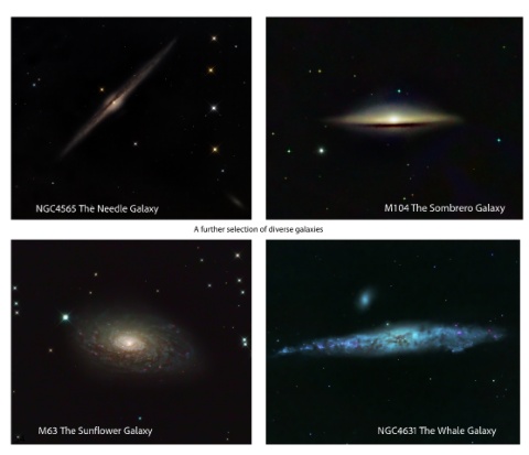 NGC4565 The Needle Galaxy M104 The Sombrero Galaxy A further selection of diverse galaxies M63 The Sunflower Galaxy NGC4631 The Whale Galaxy 54